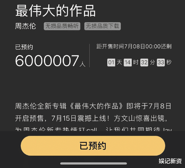 新专辑的上线让很多粉丝们沸腾了,到上线之前新专辑的预约人数就已经突破600万,这场面确实让人非常震撼,网友们都怀着激动的心情等待着周杰伦的新专辑。