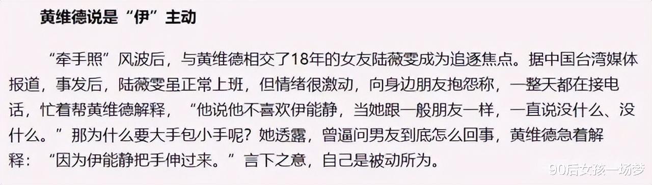 媒体自然不会放过黄维德,于是追着他问有关伊能静的事情,并且反复提起“牵手门”。