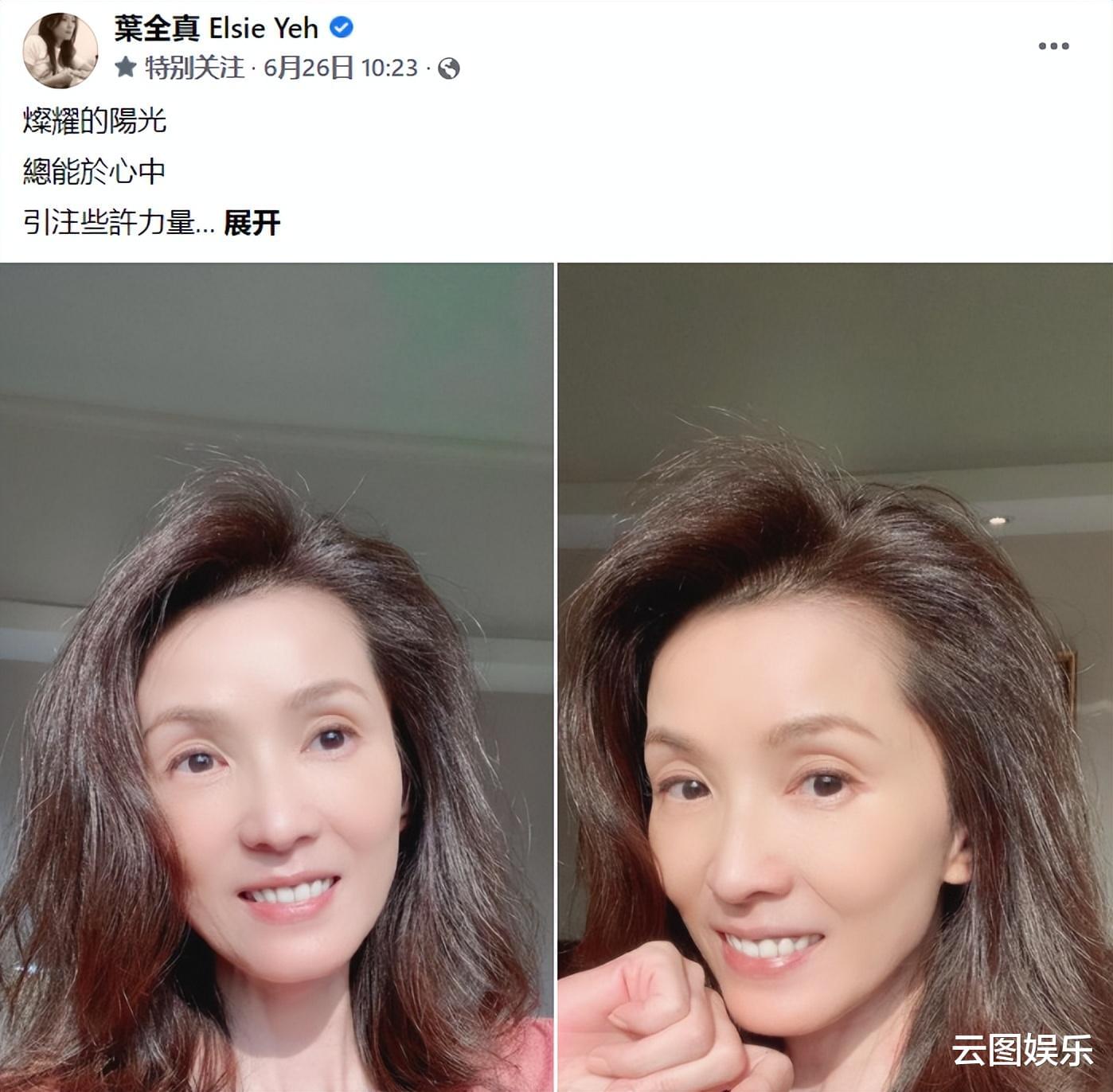 6月底,叶全真晒出了一张笑容灿烂的照片,并说了一些很积极向上的话。没想到,她当时还康复不久。