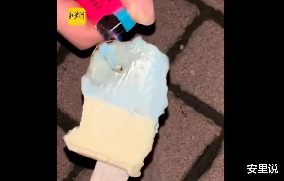 有位博主也是用打火机烤,结果雪糕都快“烤糊了”,都没见它融化,甚至在雪糕尖上,还有一丝炭火被烧的红色。