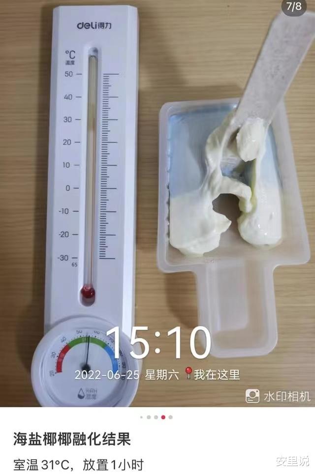 前面有博主测试了一下,在31度室温下将钟薛高放置一小时,结果发现,如此高温之下它居然都不融化。