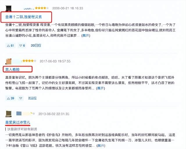 在豆瓣上,很多人为了程灵素去重温这一部剧,甚至埋怨胡斐“看脸“。