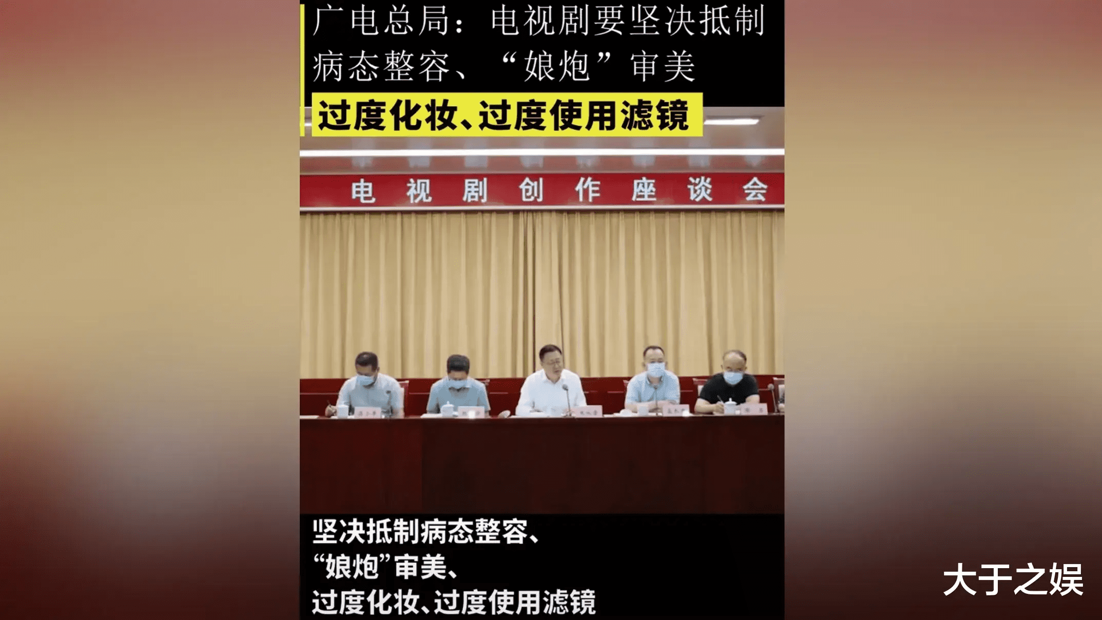 为此,7月4日,广电总局召开电视剧创作座谈会。强调要坚决抵制病态娘炮审美,电视剧制作应该抵制过度使用滤镜,过度的化妆。