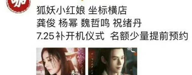 由杨幂,龚俊主演的古装剧《狐妖小红娘》目前正在横店拍摄当中,此前网传该剧阵容十分豪华,不仅是邀请了杨幂与龚俊两位当今顶流加盟,更是在配角上下足功夫,袁冰妍,陈都灵,郭晓婷等女星也在其中,还包括嘉行的祝绪丹,王一菲,张云龙,代斯等人,更有刘诗诗来客串,光阵容方面就是近期开机剧中数一数二的配置了!