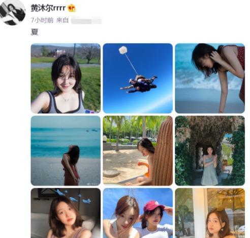 在黄沐尔的胳膊上,有着一个小小的红色纹身。黄沐尔更是在旅行中勇敢的尝试了一次高空跳伞,她张开了手臂,脸上带着灿烂的笑容,看起来一点都不害怕。黄沐尔还发了一张休闲装,一身青春活力的少女装,上身是一件白色的紧身衬衣,将她的身材衬托的淋漓尽致。黄沐尔穿着一身褐色的连衣裙,正坐在一家咖啡厅里。