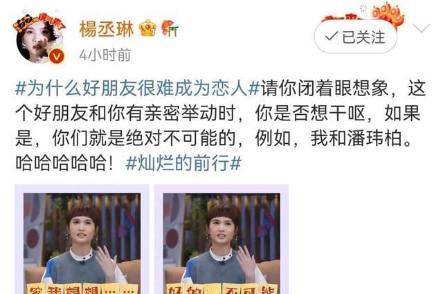 从友谊变成恋人,还是很难的,就比如她自己和潘玮柏,