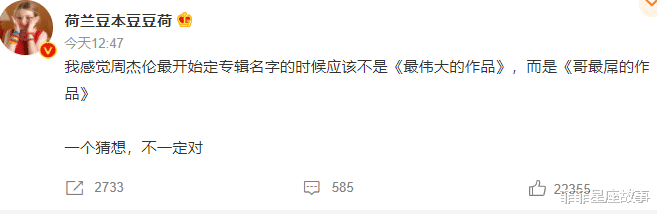 就还蛮有趣的。按说周公主的性格不可能仅仅把名字起到《最伟大的作品》,所以有粉丝调侃他还是下手太轻。合理猜想他最初或许是想叫《哥最屌的作品》。
