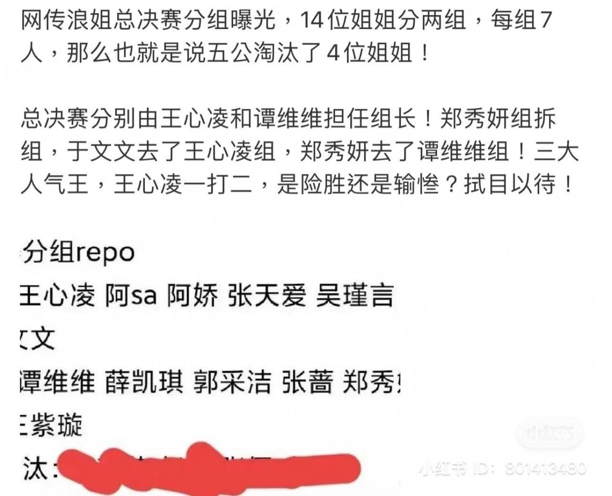 从最新的分组名单未能看见张俪、张歆艺、齐溪、赵梦的名字,难道真的彻底 OUT 了? 许多人对这个刚发布的名单提出质疑「应该是假的吧~」「紫璇发了微博说别的组满人,我们组只有 5 个人,后面会很难,所以凹凸组没有拆,估计走得只有二姐」「明显假瓜~梦姐哪里可能走」