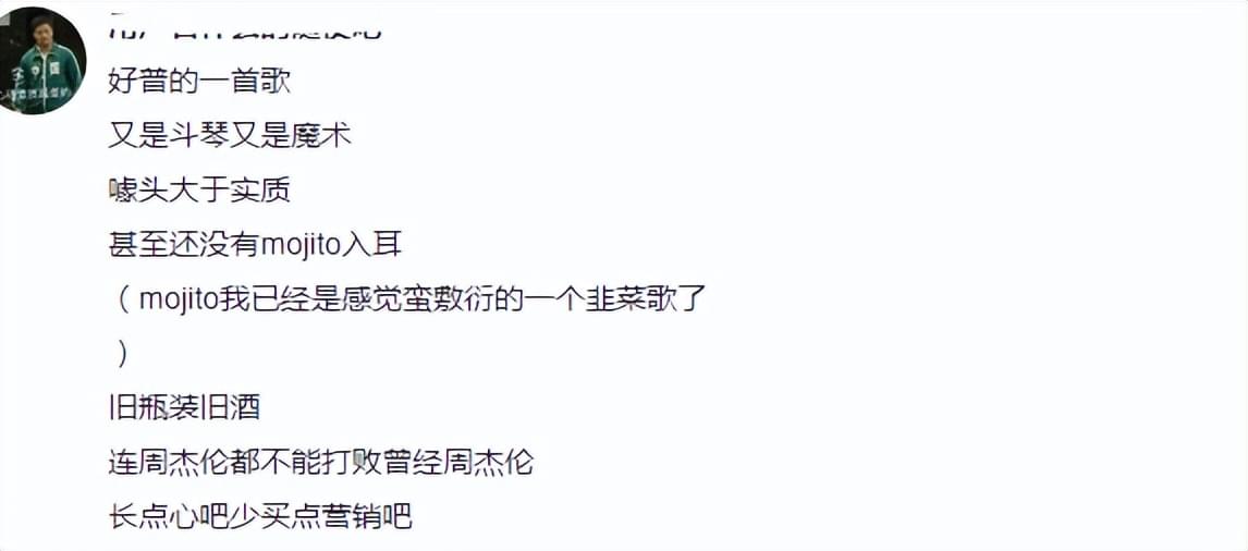 新专辑倒是满足了粉丝的期待,但是以先行曲来说,路人的评价倒是有些一般,有网友认为这首歌听起来很普通,MV花里胡哨又是斗琴又是魔术,甚至还不如《Mojito》入耳,相比较之前那些歌曲的质量更是有明显的差别。