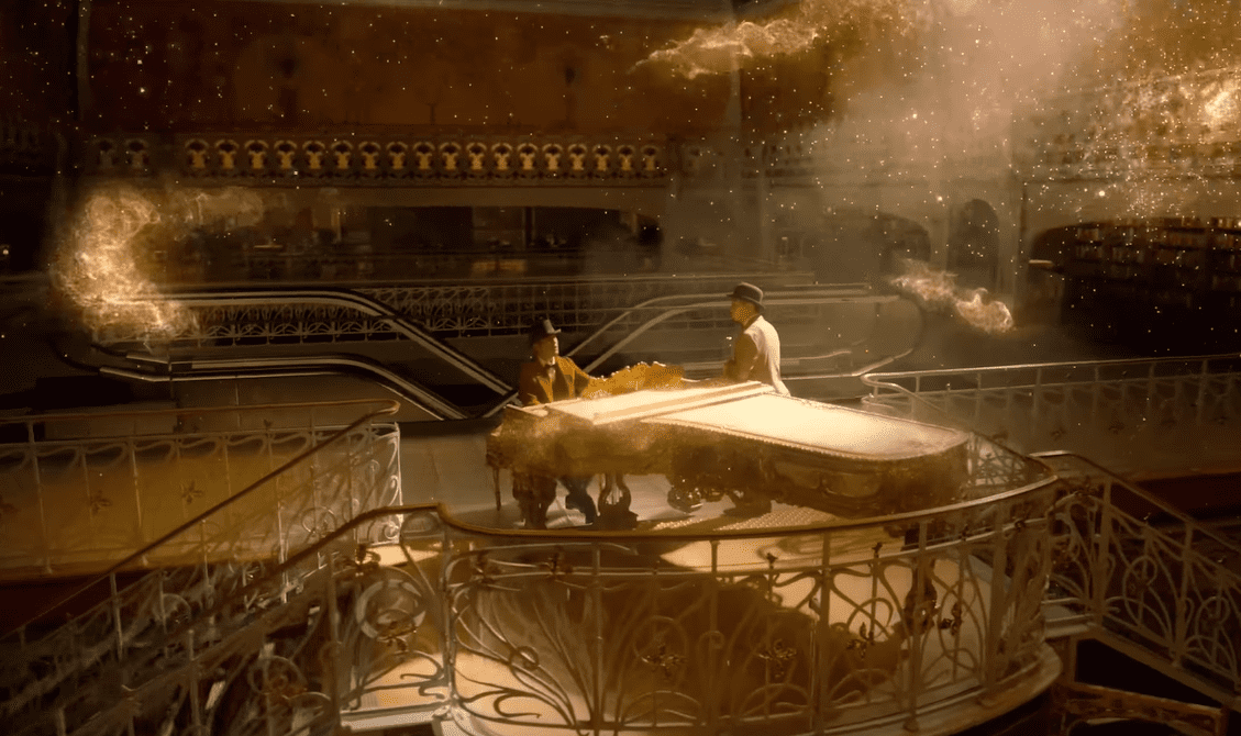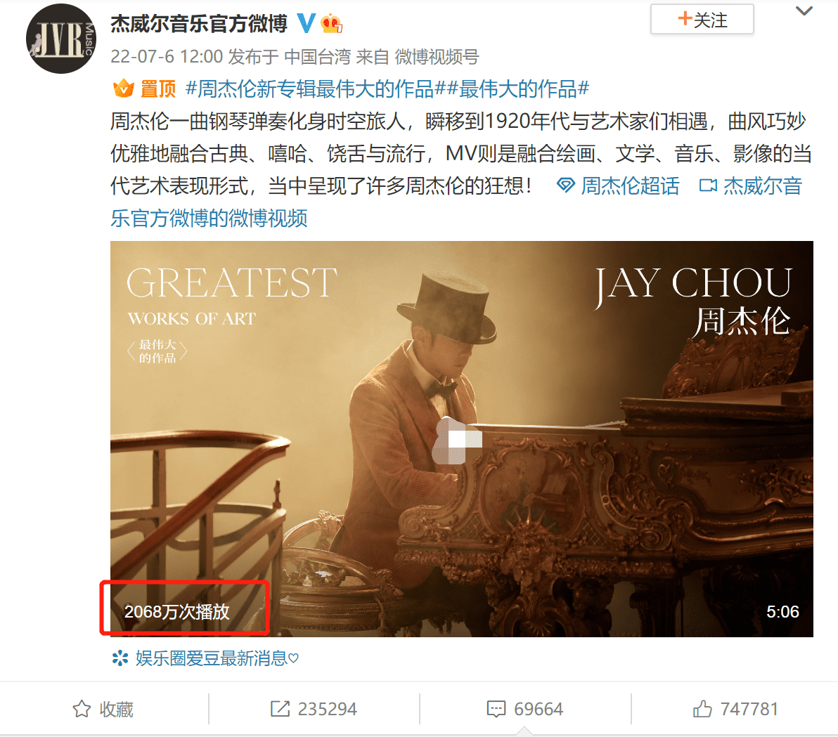 在MV中,周杰伦一曲钢琴弹奏化身时空旅人,瞬移到1920年代与艺术家们相遇,曲风巧妙优雅地融合古典、嘻哈、饶舌与流行,MV则是融合绘画、文学、音乐、影像的当代艺术表现形式,当中呈现了许多周杰伦的狂想!