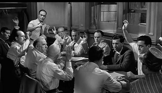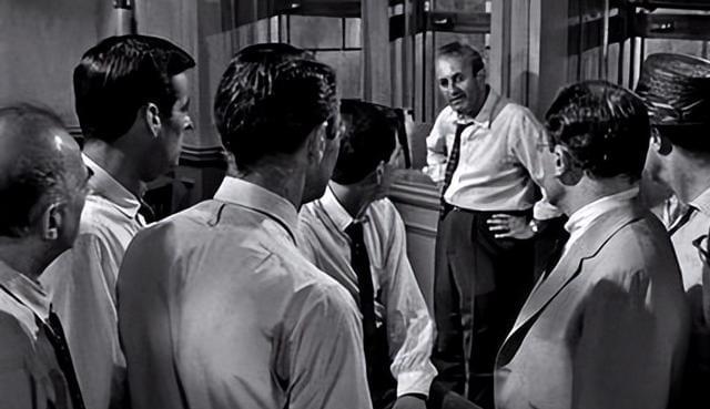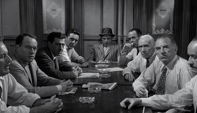 演员的调度从来都是与摄影机的运动密不可分的,这两种形式在对节奏的影响上有着极其相似的作用。同样是在影片《十二怒汉》中,其演员调度的方式可谓是电影调度的教科书。