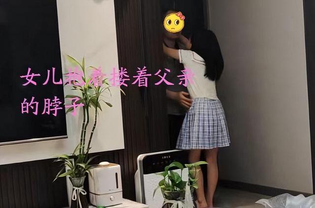然而随着门锁的扭动,小女孩仿佛收到了指令一般,光着脚就蹦蹦跳跳地跑了过去,一把抱住了刚刚下班回家的父亲,与对方表现得十分亲昵。
