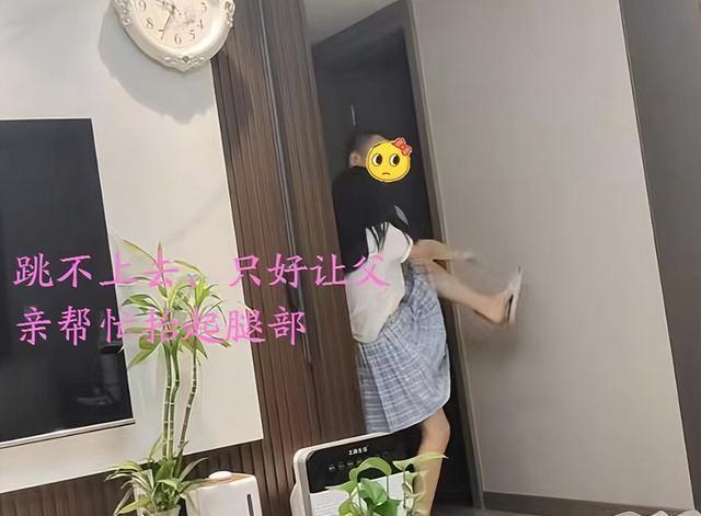 在看到父母都没有制止自己的这种撒娇行为之后,女儿的胆子也是越来越大了,仿佛是故意要在镜头面前展示自己一番,竟然还尝试着抬起腿,希望爸爸能够给自己像小时侯一样来一个公主抱。