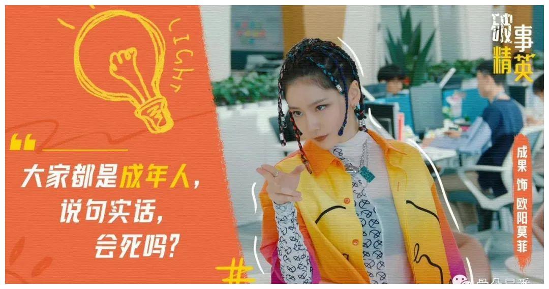 眼下,欧阳莫菲的故事即将讲完,成果又回归到了那个喜欢在互联网上分享日常的普通人成果,至于下一个角色会以何种面貌出现在观众面前,还得看成果的“修炼”。01得过且过?在欧阳莫菲这行不通!《破事精英》里的欧阳莫菲,是个扎着一头脏辫儿、脚踩马丁靴、手摸大蜥蜴,一切程序bug都不放在眼里,像个刺儿头一样致力于整顿职场,似乎随时随地都有可能火力全开的极致形象。这和现实生活中的成果差的可不是一星半点儿,但你又不能说在欧阳莫菲身上看不见成果的影子。毕竟“没办法对负面事件忍气吞声,不习惯息事宁人的‘糊弄学’,对某些事情就想要一个结果”,是她和角色之间早已达成的共识。