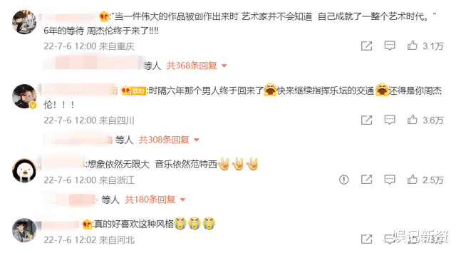 不到一小时的时间MV的播放量就已经突破了千万,网友们也是纷纷点赞评论为其打call,有网友就提到:当一件伟大的作品被创作出来时 艺术家并不会知道 自己成就了一整个艺术时代。 更有网友引用知名台词调侃:你知道我这六年是怎么过来的吗?