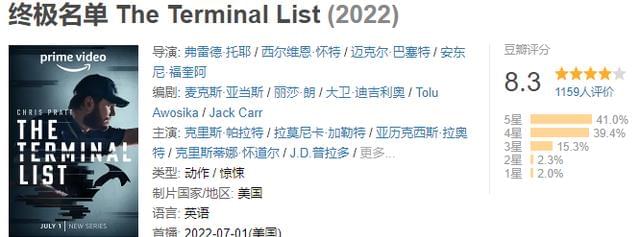 在豆瓣平台,《终极名单》开分为8.2分,现已冲上了8.3分,五星好评占比最高,约为41%,其次是四星好评,占比约为39%。