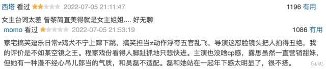 虽然某评价平台确实出了很多黑评,比如排第一的说,剧中饰演女主母亲的曾黎“美得就是女主姐姐”,那我觉得姐妹的话,年纪差得还是有点大。