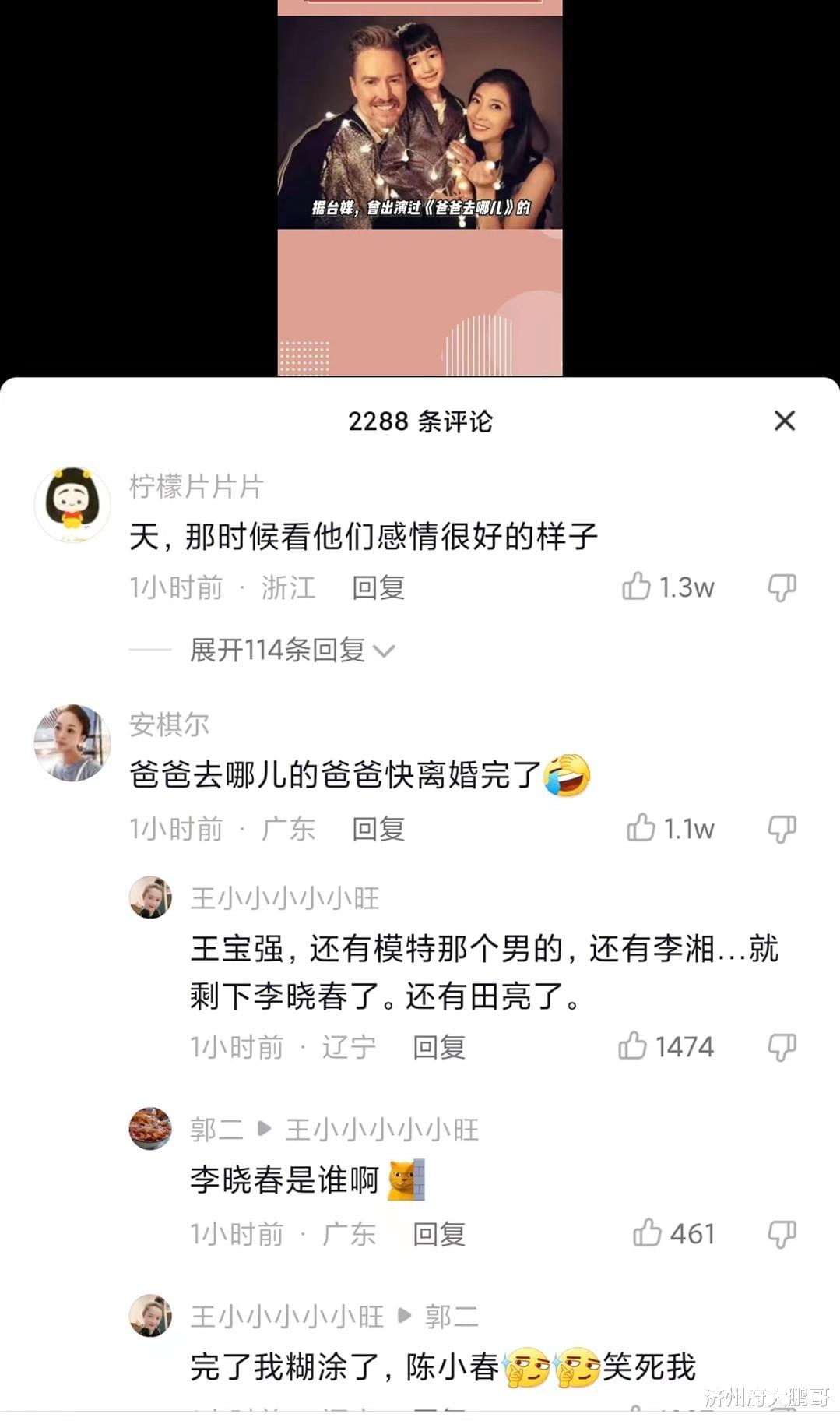 有网友打趣说,爸爸去哪儿了……爸爸快离婚完了……