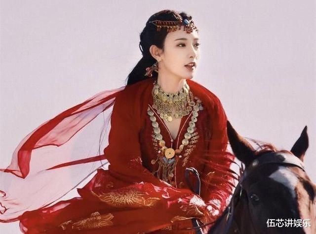她一袭红色纱衣,搭配红色珠宝“额饰”,在骏马上驰聘,纱衣随风飘动,简直不要太好看。
