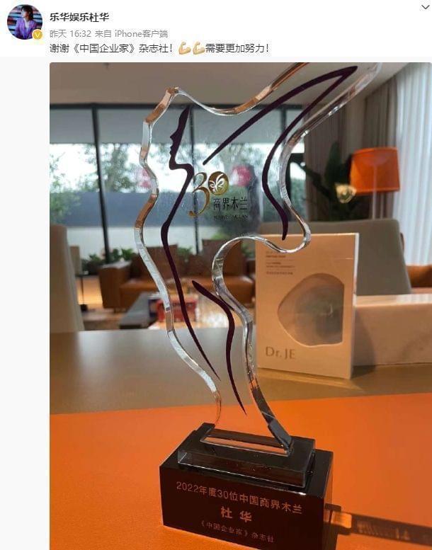 前几天,杜华曾在社交平台晒出一座奖杯,并发文感谢《中国企业家》杂志社,表示自己还需要更加努力。