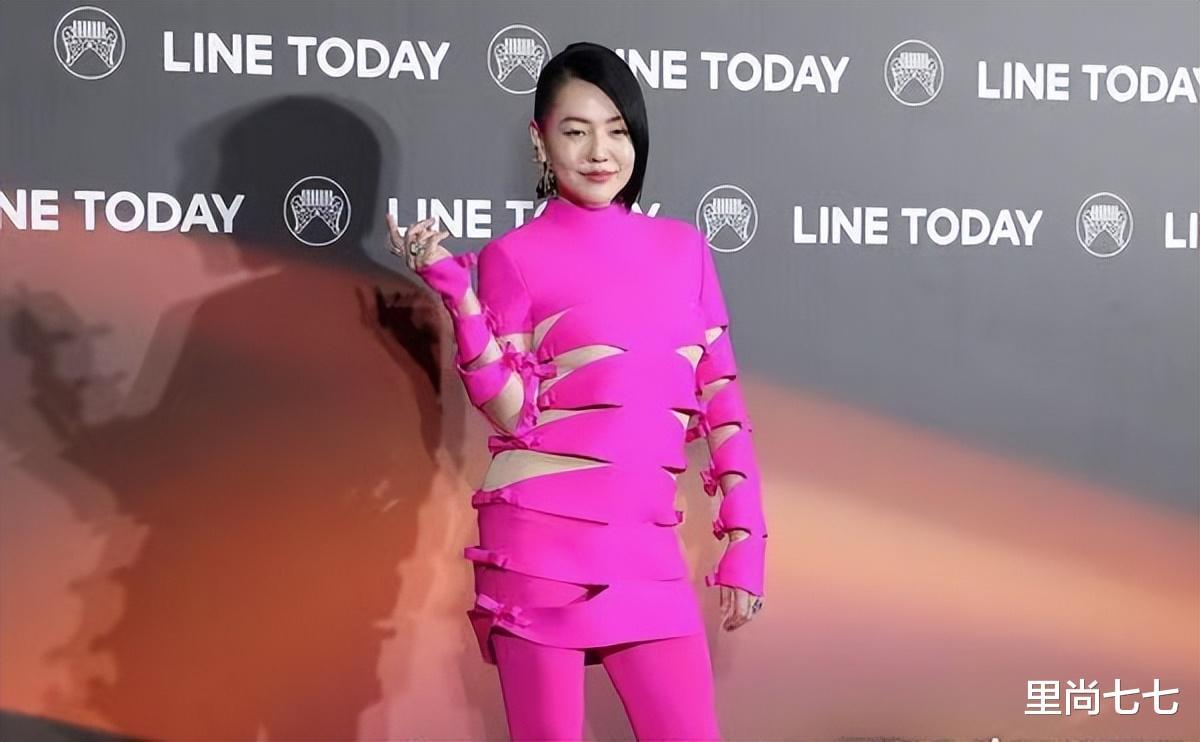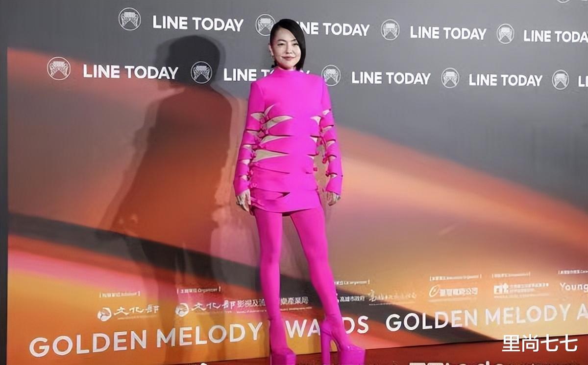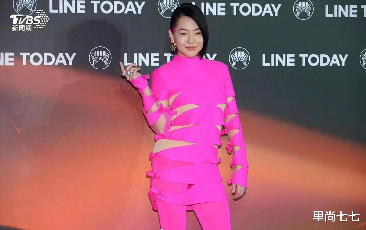 不得不说,从这个角度来看,小S的审美绝对不只有大胆和个性,也充斥着独特的色彩审美,对于整体造型的一致性和协调性,应该有所研究。所以尽管没有太多曲线感的流露,但是造型也不失为一次成功的尝试,色彩上的大胆,款式上的别致,都已经让造型充满了特色。
