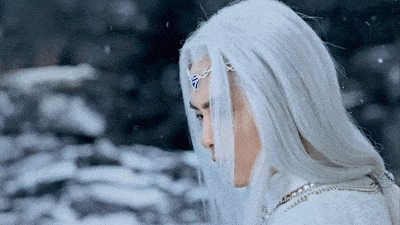 冯绍峰的扮相相当吸睛,完美容颜,加上白衣白发,美的不真实。确实,他本事幻雪王国的幌子,自不是人间凡境可以轻易见到的。