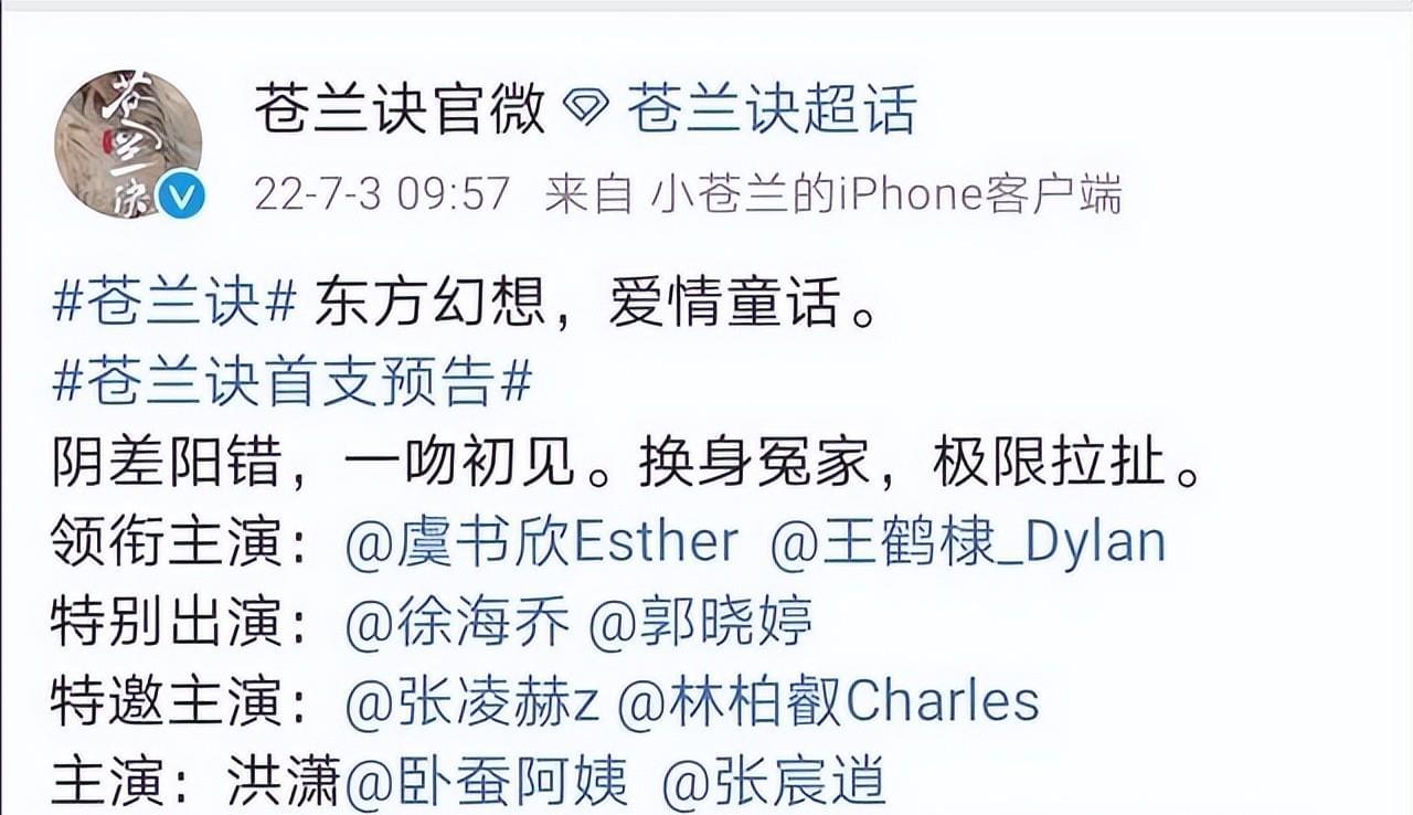 这部剧是由虞书欣、王鹤棣领衔主演,徐海乔、郭晓婷特别出演,张凌赫、林柏叡特邀主演的,主要讲述了傲娇大魔头东方青苍和软萌小仙女小兰花之间的虐恋故事。