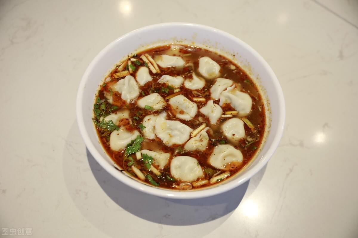 酸汤水饺是水煮饺子的升级版,主要是酸辣汁的调入更加开胃,汤汁是这道饺子的灵魂。