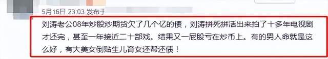 今年5月,有网友在社交平台上爆料,称刘涛已经与丈夫王珂离婚,并透露夫妻二人离婚的导火索就是王珂在炒币上亏了钱。