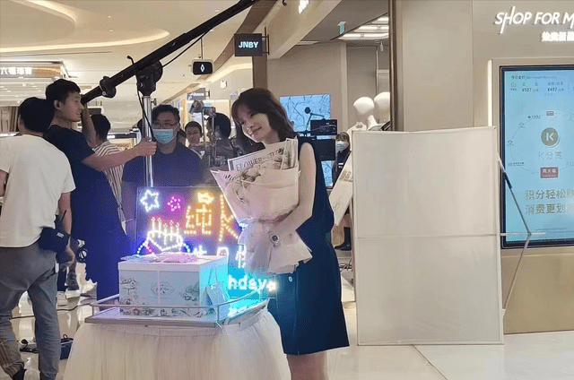 刘涛收到剧组送来的捧花,微笑着与蛋糕灯牌合影,歪头的动作很是娇憨可爱。