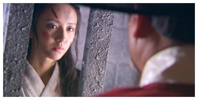 这是一个十分经典的镜头。明明是身处黑暗的牢狱,明明她一身血污、肮脏凌乱,但她的目光坚韧,让人有种圣洁不可亵渎的光。