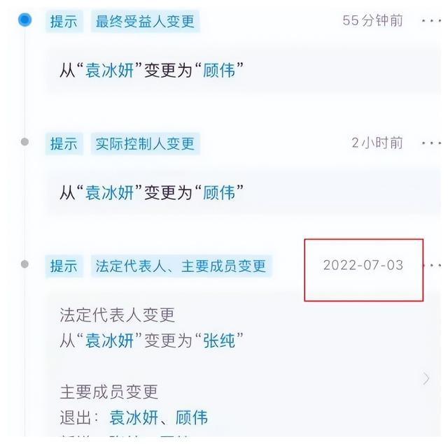而值得注意的是,就在处罚公开的前一天,袁冰妍退出了该公司,法定代表人、执行董事兼经理职位,由张纯接任,大股东由袁冰妍变更为顾伟。