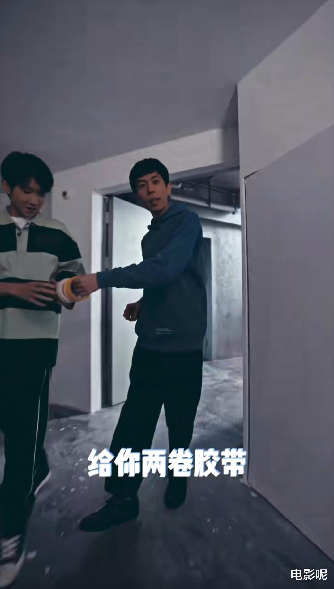 虽然是第一次,但要做的标识量很大,所以王源也是越来越驾轻就熟。用步幅丈量,然后用脚踩着胶带的一端,另一端扯到合适的地方拉断,看起来源哥做得很好。