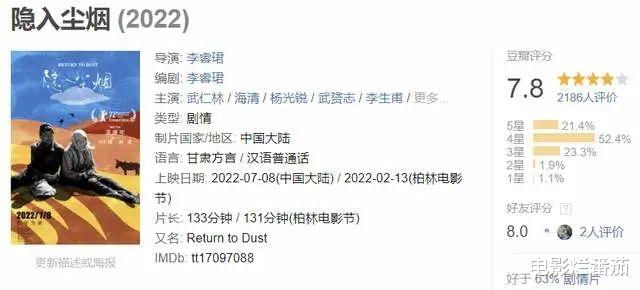盼了几个月,终于把你给盼来了。今年,《隐入烟尘》入围柏林电影节主竞赛单元,在国内备受好评,虽然还未上映,但7.8的评分对一部文艺片来说,着实不低。