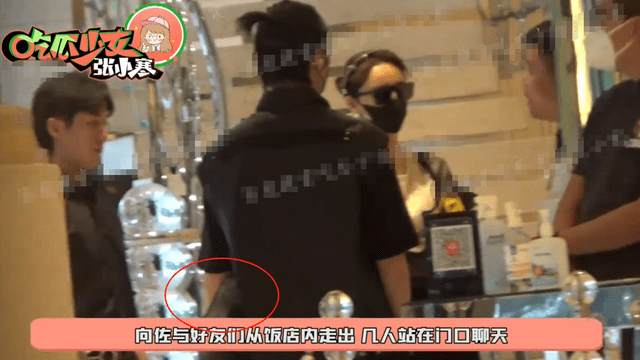 向佐全程都将靠枕紧紧地抱在怀里,进到饭店后,向佐和助理站在大堂内聊天,精神很不错的样子。