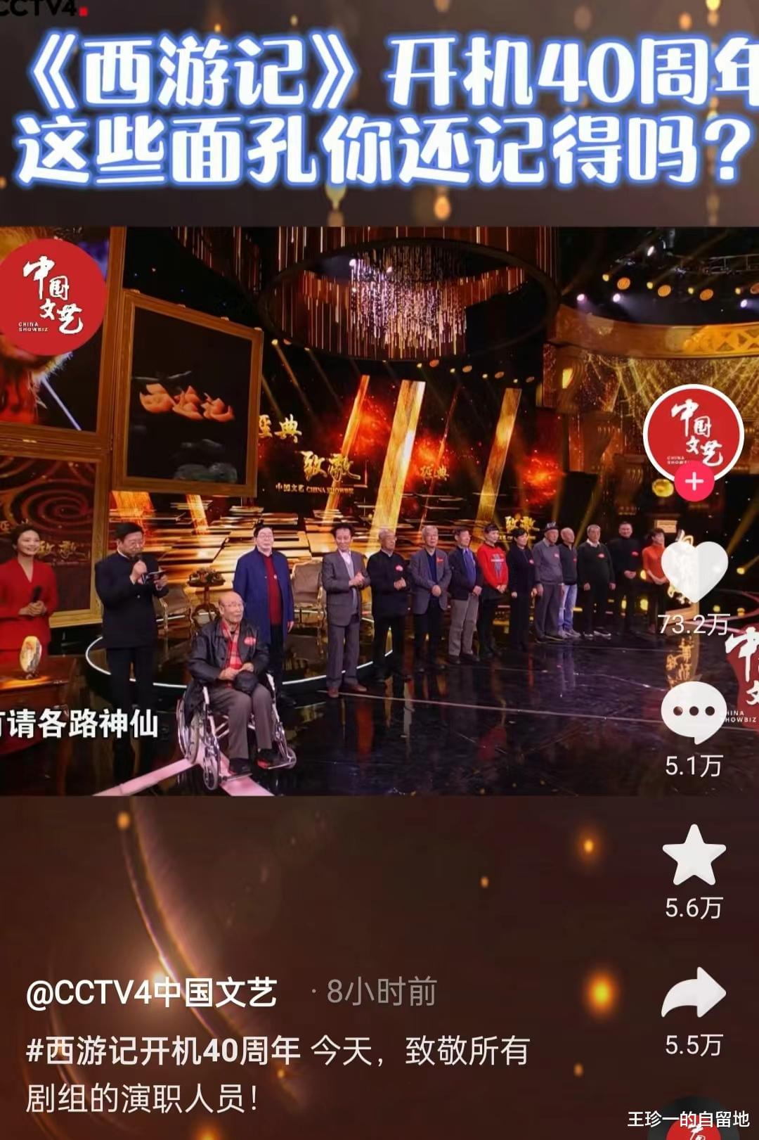 近日,86版《西游记》剧组众演员齐聚CCTV,一起庆祝《西游记》开机40周年。