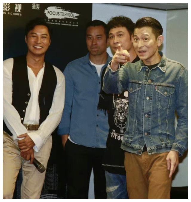 单看背影,完全看不出这是一位53岁的人。谭耀文穿着一身黑色套装,打扮得很显年轻。虽然他180cm的身高被拍成了五五分,但依然身姿挺拔。