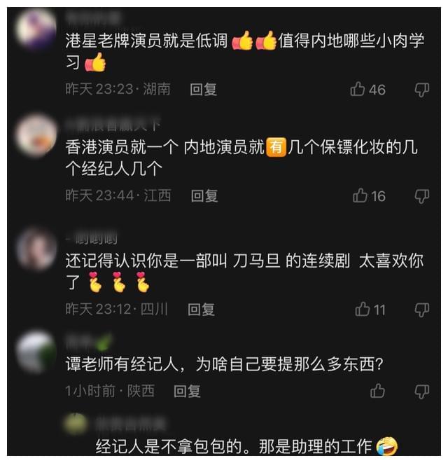 网友们看到谭耀文在内地独自赶飞机的视频后,纷纷夸赞港星老牌演员都很低调接地气,值得年轻的艺人学习。