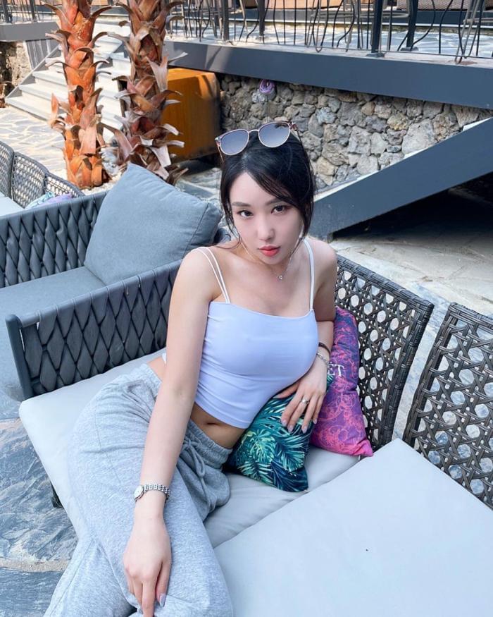 背心吊带的设计让女主平滑的香肩、美丽的锁骨以及两条皓洁的臂腕尽收眼底,再加上那一张精致的五官,实在是让人垂涎不已!