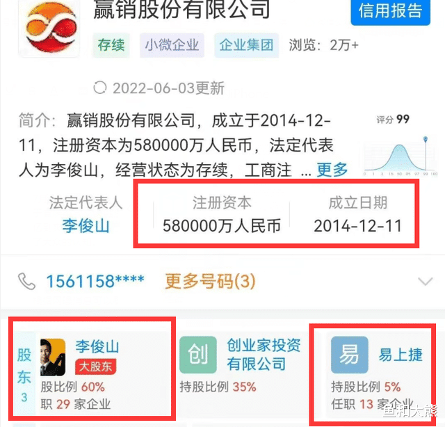 根据网曝消息可以看到,易烊千玺父亲与名为李俊山的人合开了一家名为赢销股份有限公司的公司,其注册资本一栏填了58亿。要知道,明星及其父母投资公司赚钱已经屡见不鲜,但通常注册资本都在100万左右,多则也不过千万,上亿的更是完全看不见。
